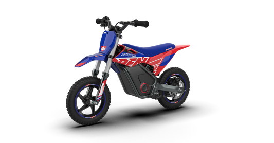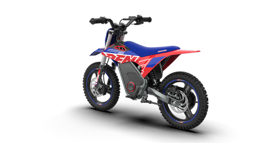 Introducing the Warrior a top-tier 36V electric MX bike for kids aged from 3-6 & 4-8. Featuring a powerful Direct Drive system, it delivers up to 11 miles of riding in Eco Mode. Power increases as confidence grows, with safety features like a lanyard Power Off and power lock cover. Designed with bright colours, MX styling, and wide anti-slip tyres, it’s perfect for grass, mud, and sand.